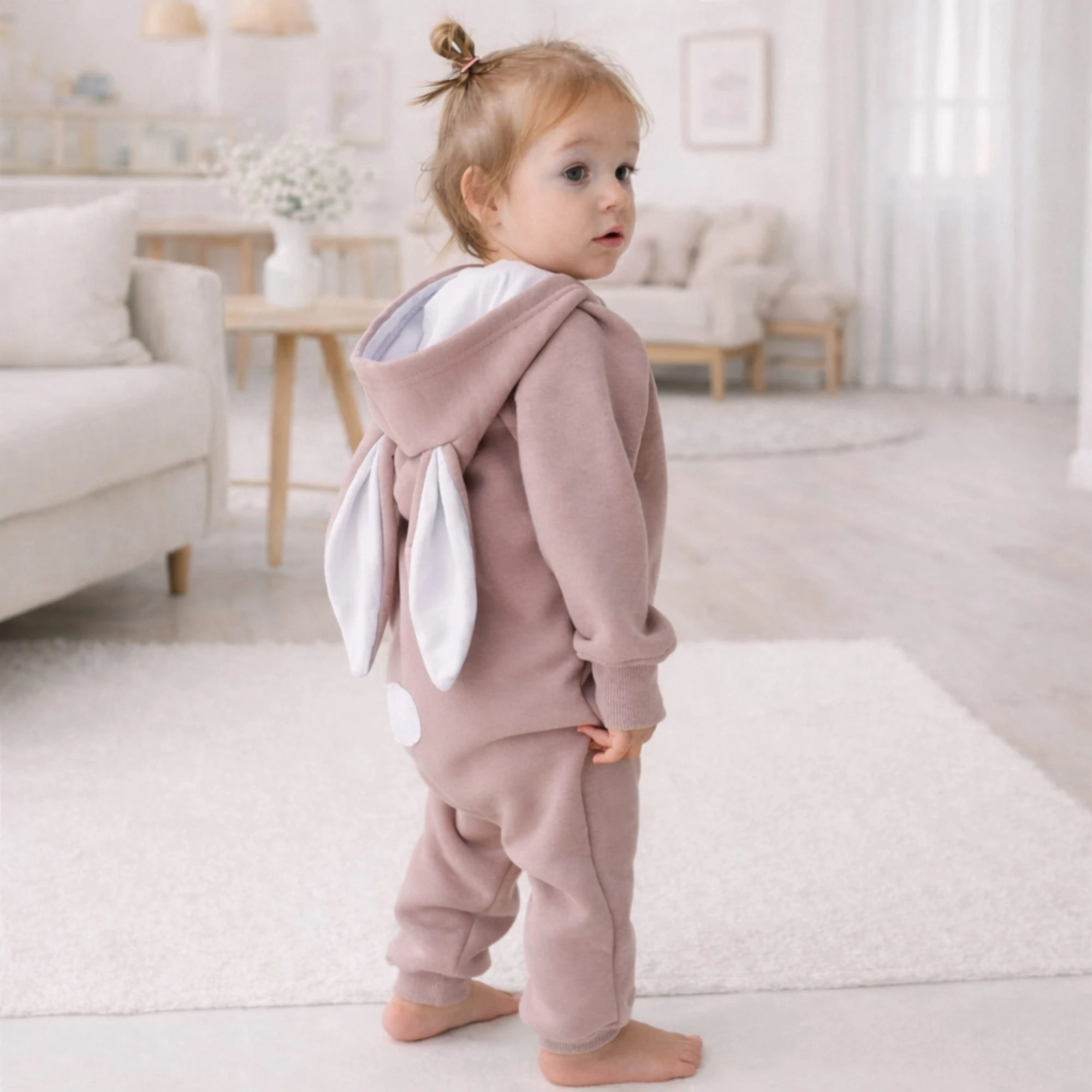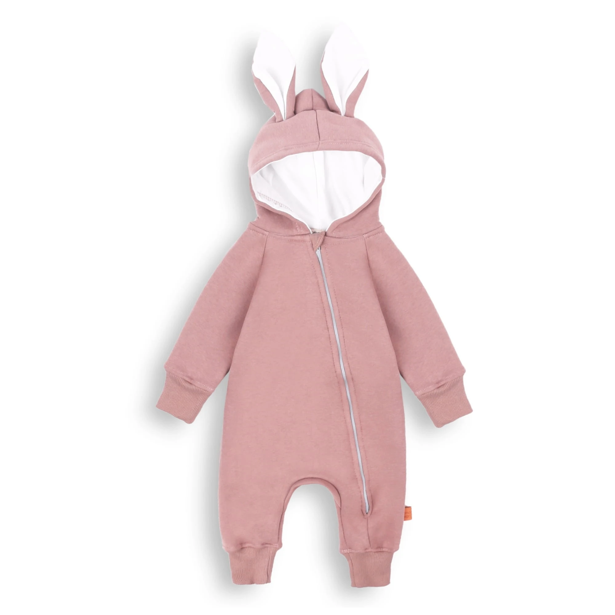 Kombinezon dziecięcy z uszami królika – mięsisty rampers uszyty z wysokiej jakości dzianiny 320 g/m² (80% bawełna, 20% poliester).